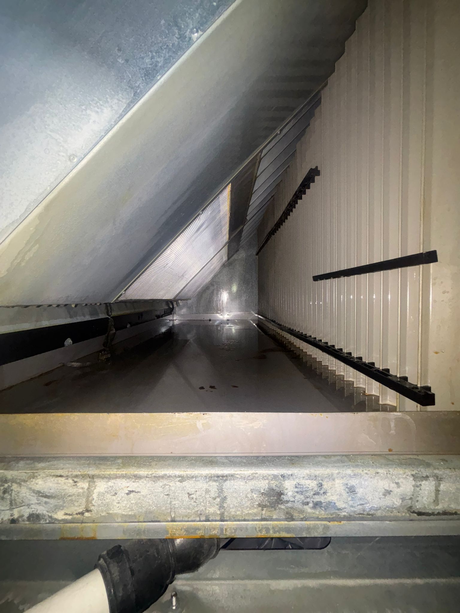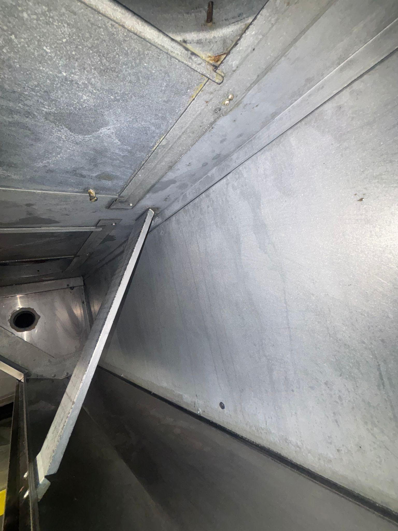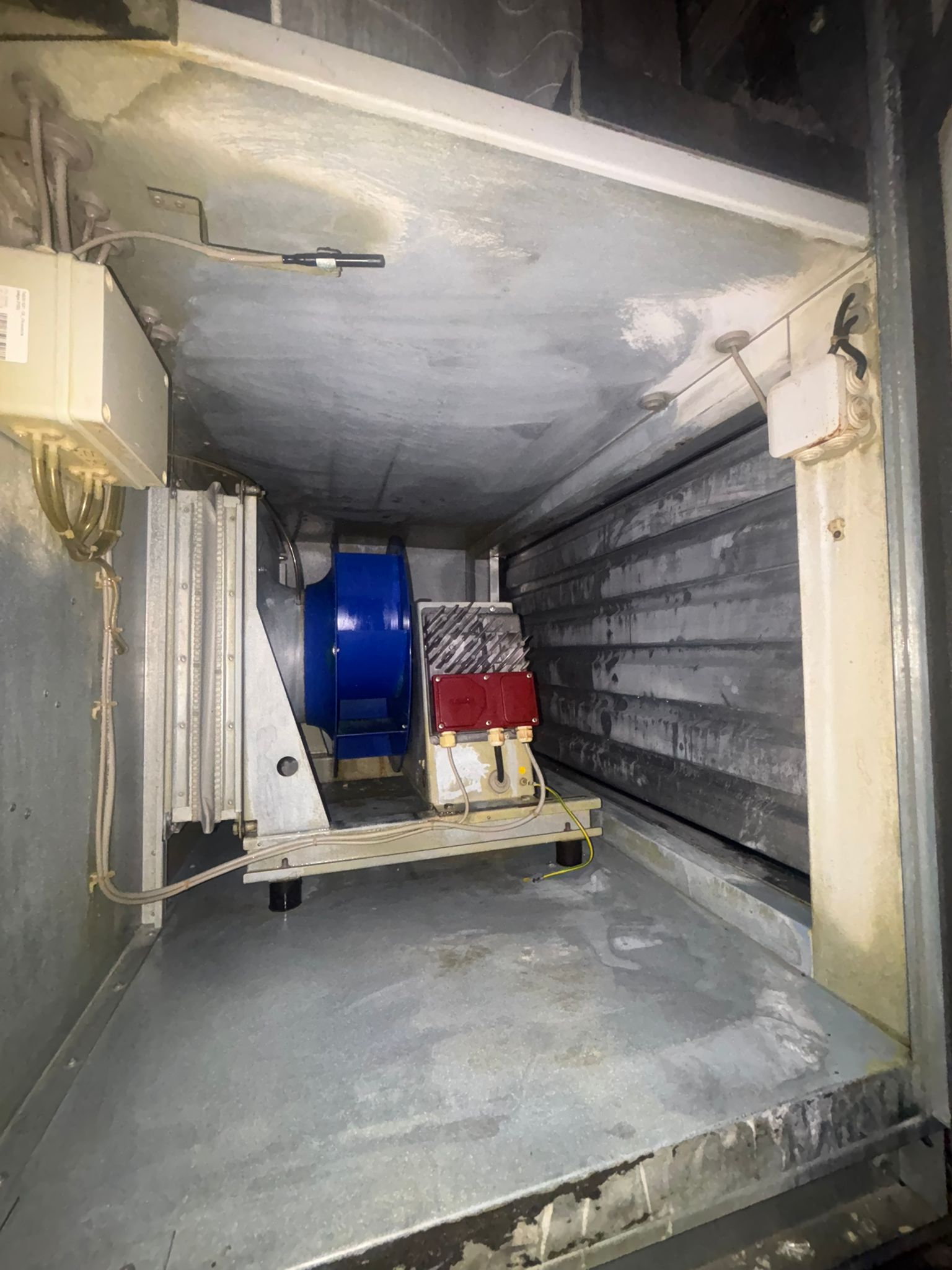 Notre équipe est intervenue sur l'ensemble du circuit d'extraction — hotte, gaines, échangeur monobloc et moteur — pour éliminer l'intégralité des dépôts de graisse et restaurer une aspiration optimale.
