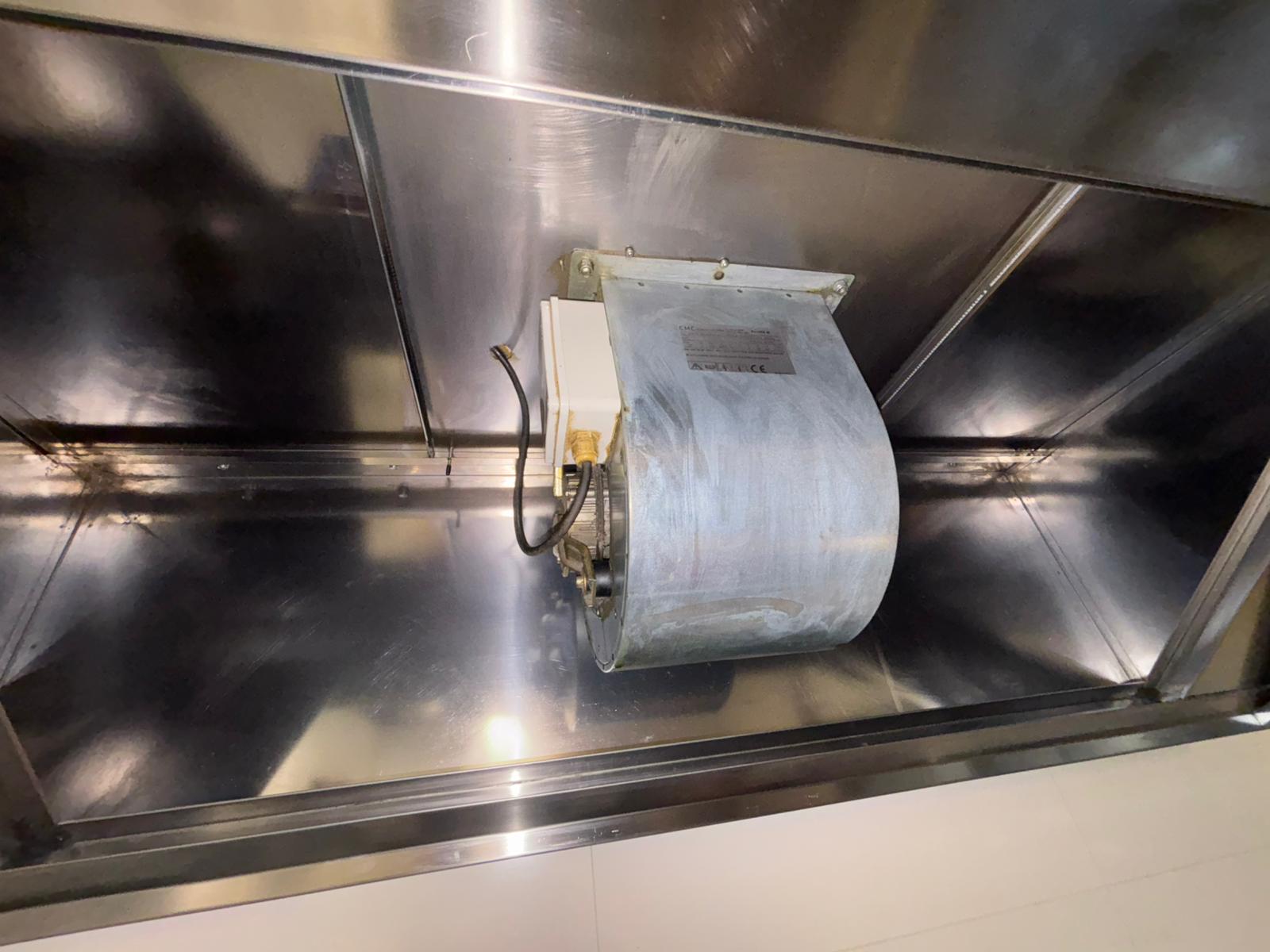 Notre équipe est intervenue sur la hotte et le moteur escargot pour éliminer l'ensemble des dépôts de graisse et restaurer une aspiration optimale dans la cuisine de l'établissement.